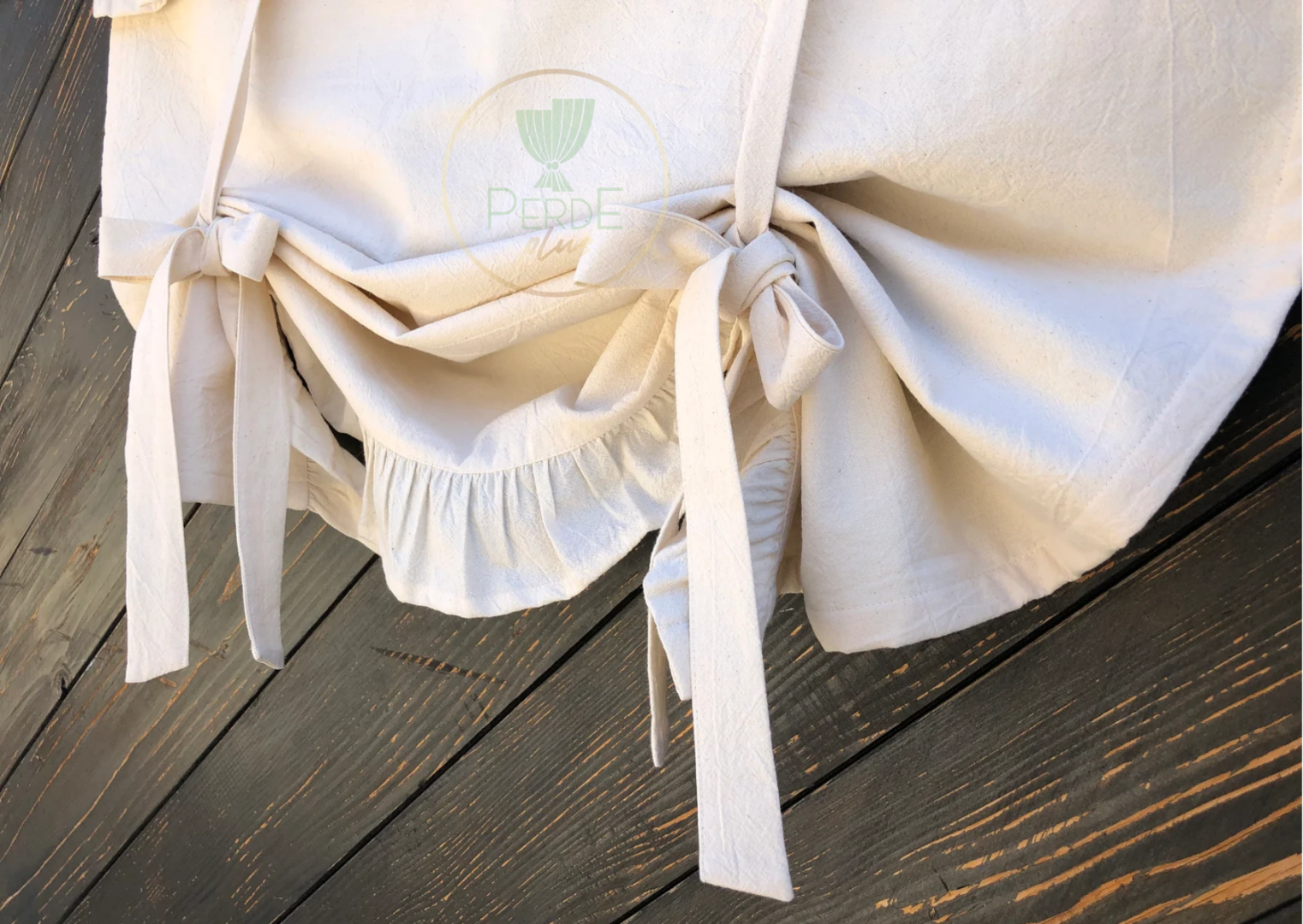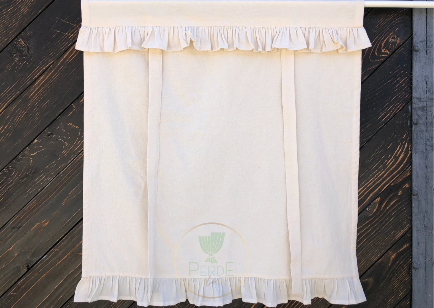 Çift Fırfırlı Bağlı Pamuklu Fon Perde