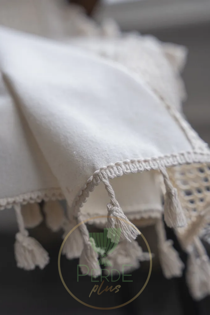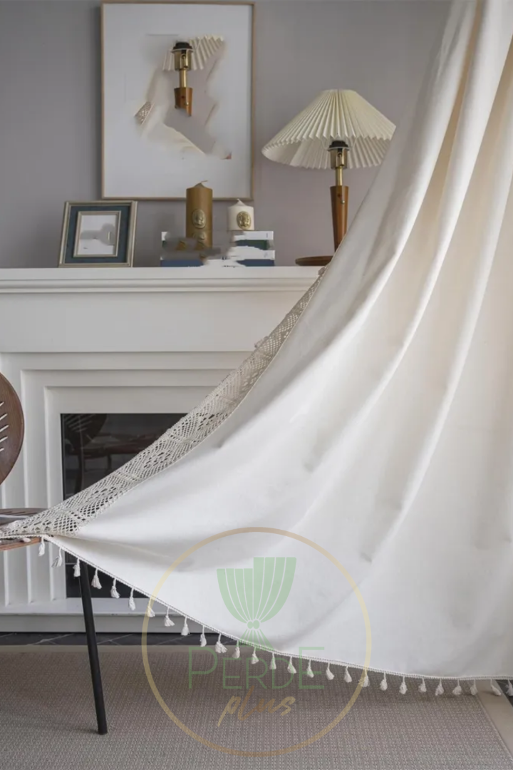 Dantel ve Püskül Detaylı Pamuklu Fon Perde
